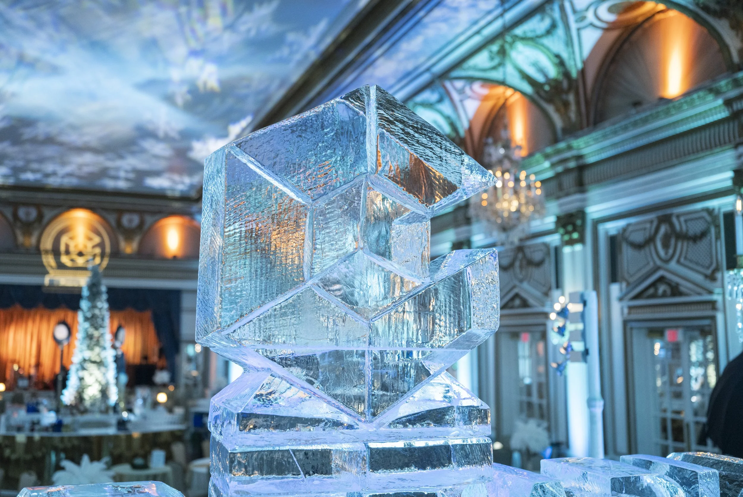 Guests were welcomed by a striking seasonal statement: a custom-branded ice sculpture, illuminated in the company’s color to create an immediate sense of arrival and brand presence. Designed to reflect the Frozen in Time theme, the sculpture symbolized the preservation of the brand’s story while anchoring the evening in a polished winter aesthetic.