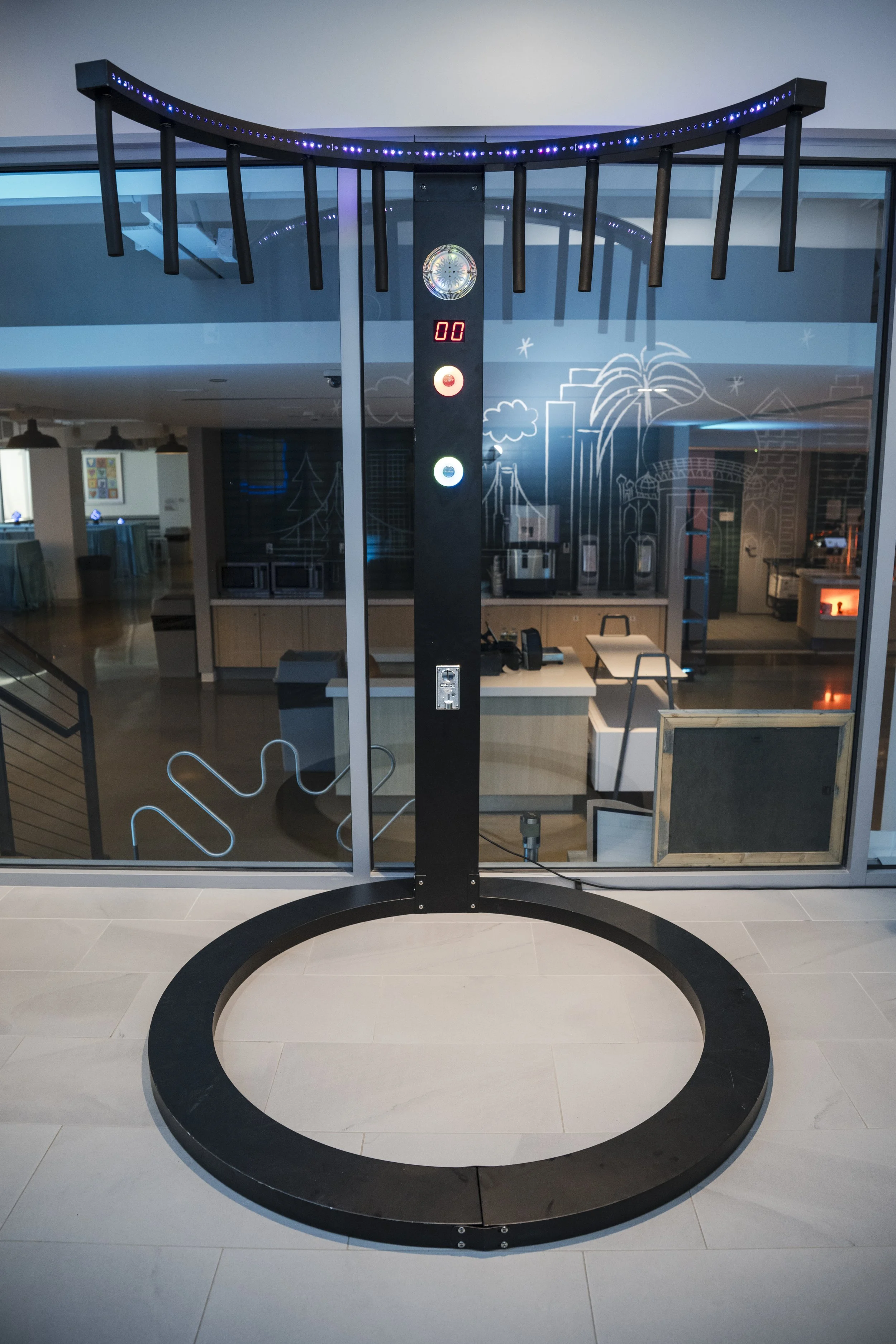Awards were displayed on white serpentine tables, beautifully lit from above to shine like the achievements they represented. Hidden throughout the space were interactive food stations and playful experiences, including Giant Light Bright, Foot Frenzy 1v1 soccer, a photobooth, and the night’s biggest hit — our brand-new Quick Stick game, where guests tried to grab falling sticks before they hit the ground.